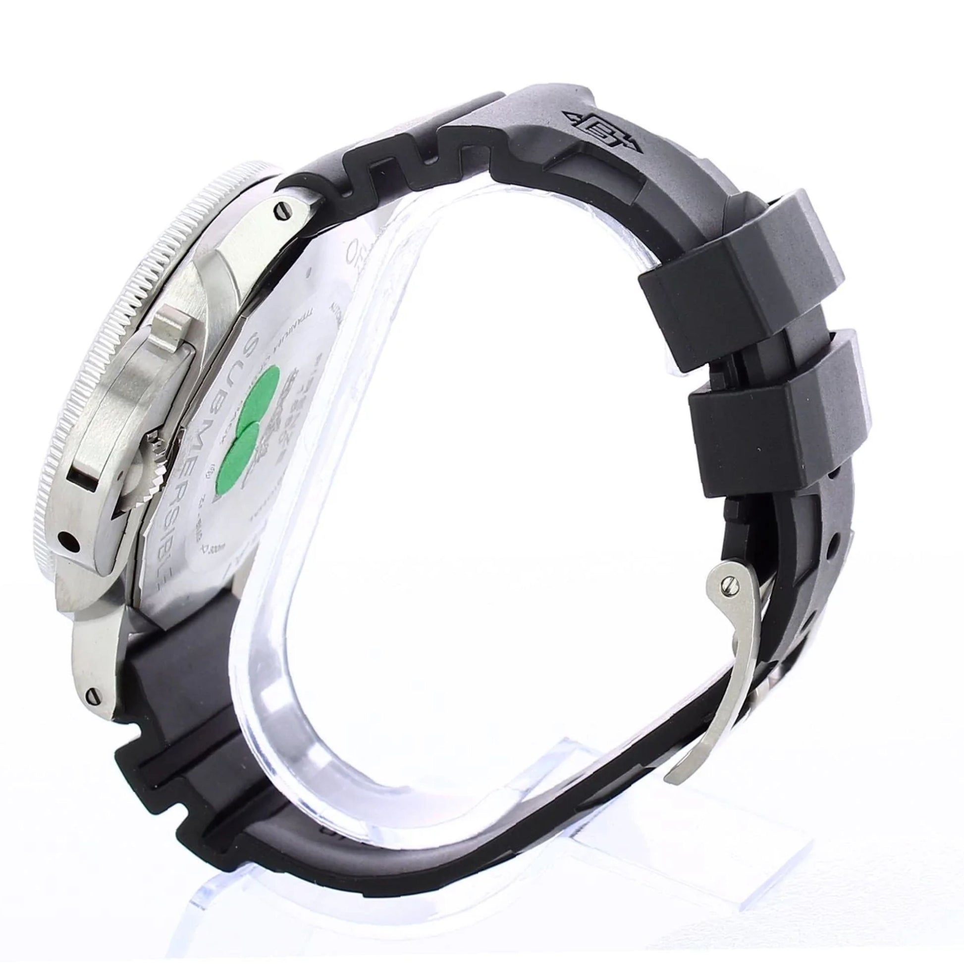 Das Gehäuse, die Lünette und der markenrechtlich geschützte Kronenschutz der Panerai Luminor Submersible PAM00692 aus dem Jahr 2017 sind aus BMG-Tech, einem exklusiven Material von Panerai. Edelstahlgehäuse mit schwarzem Kautschukarmband mit Dornschließe. Lünette BMG-Tech™. Blaues Zifferblatt mit aufgesetzten leuchtenden Stundenmarkierungen. Datumsfenster bei 3 Uhr, kleine Sekunde bei 9 Uhr. Automatikwerk Kaliber P.9010 mit 72 Stunden Gangreserve. Die Aufzugskrone ist durch die klassische Brückenvorrichtung mit Hebel geschützt. Ref. 692
