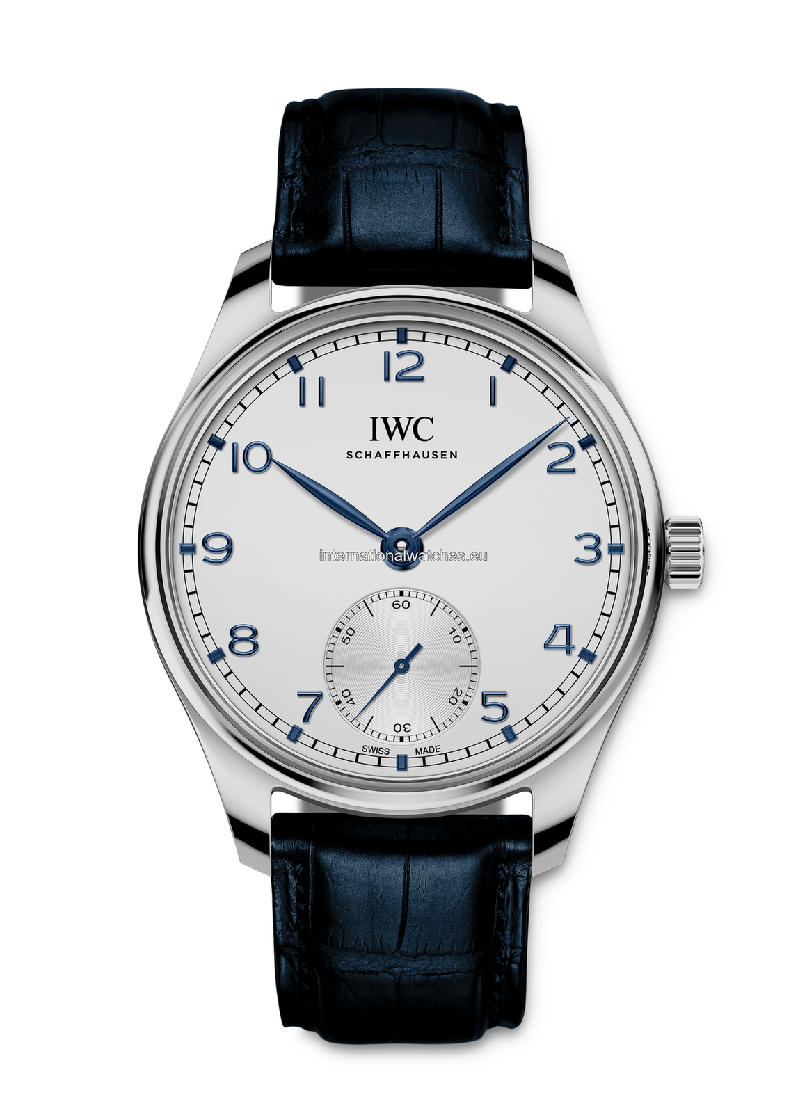 A clearly organized and open dial, with the characteristic minutes scale and the small seconds at "6 o’clock"; IWC’s Reference 325 in the late 1930s established a classic design idiom that has run as a common thread through the history of the Portugieser family ever since. Now the timelessly modern design returns to the collection in a new automatic model with a compact case diameter of 40 millimetres. The Portugieser Automatic 40 is powered by the IWC-manufactured 82200 calibre. This robust, high-quality automatic movement has a Pellaton winding system with components made of virtually non-wearing ceramic, which builds up a power reserve of 60 hours. This model features a stainless-steel case, a silver-plated dial, as well as blue hands and appliqués. It is fitted with a blue alligator leather strap. Thanks to the newly developed butterfly folding clasp, the watch is particularly comfortable to wear.